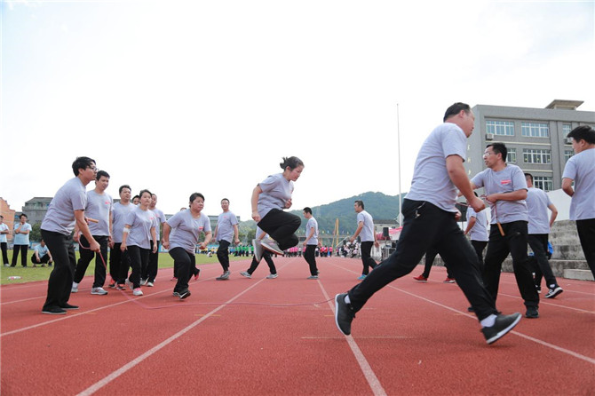 Group skipping and rdquo.A team of 20 people participated in the competition, two of them swayed the rope, and the remaining 18 skipped the rope in turn. In the course of the match, some teams stumbled on the rope, some teams reacted steadily, and some teams stumbled over the rope several times in a row. In the end, the administrative center team jumped 235 times in 3 minutes to get a & ldquo. group skipping and rdquo. first place in a single competition.